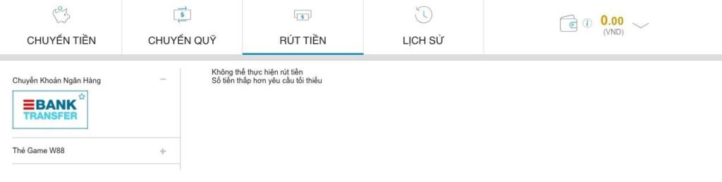 | Phương thức thanh toán | Chuyển tiền nhanh ngân hàng Thẻ cào điện thoại Thẻ game W88 |